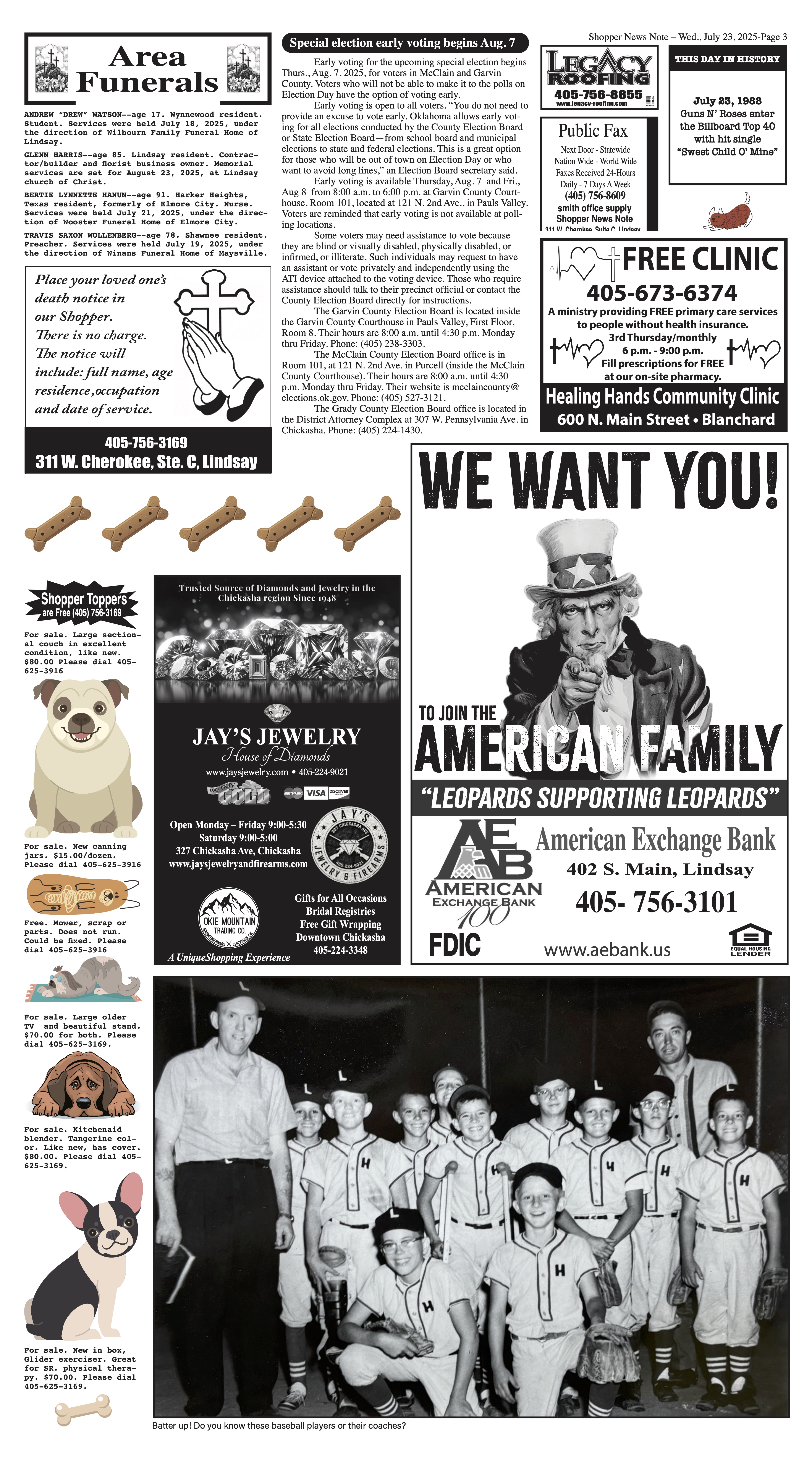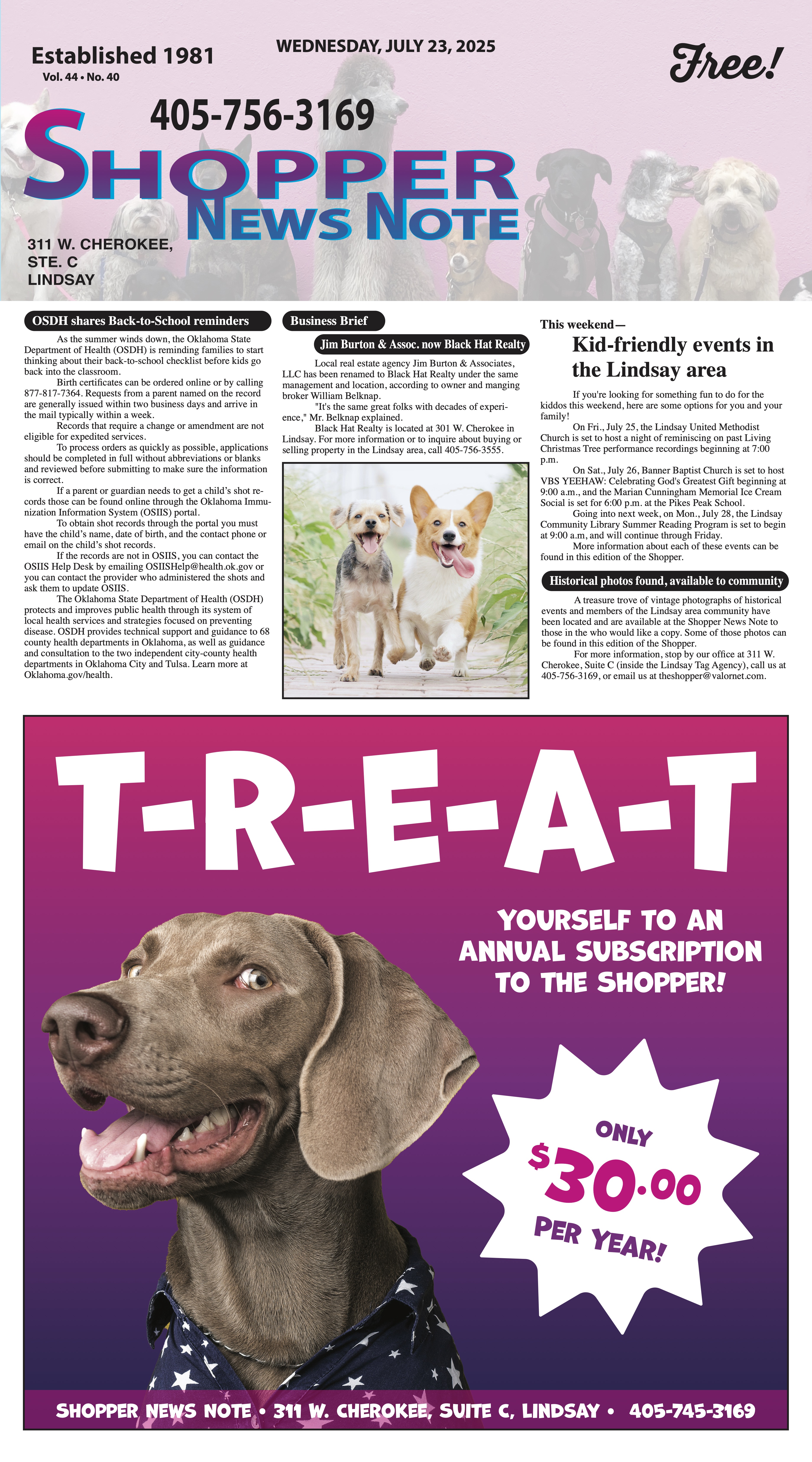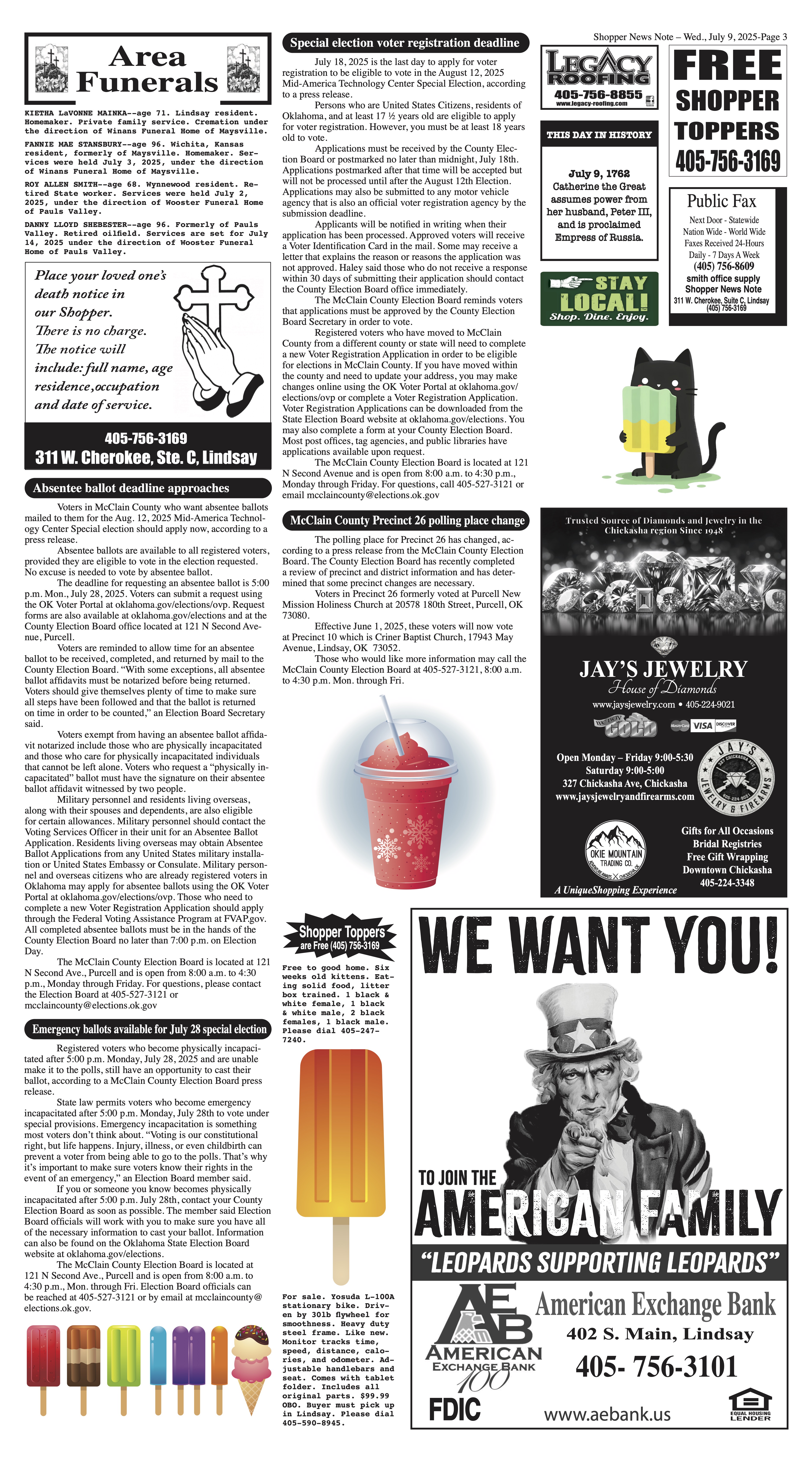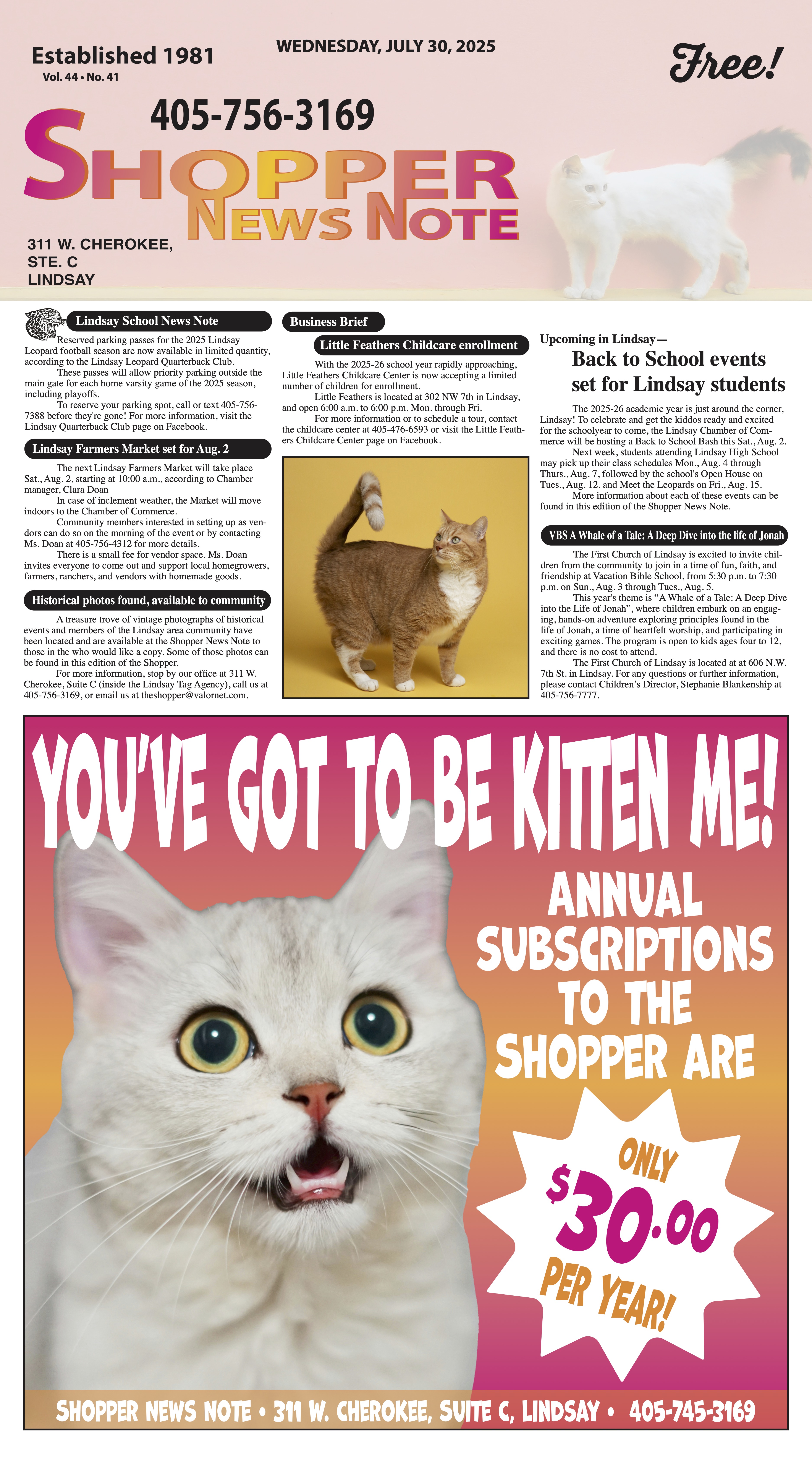 UncategorizedJuly 30, 2025 edition July 30, 2025July 30, 2025 Shopper News Note Share this: Click to share on X (Opens in new window) X Click to share on Facebook (Opens in new window) Facebook Like Loading...