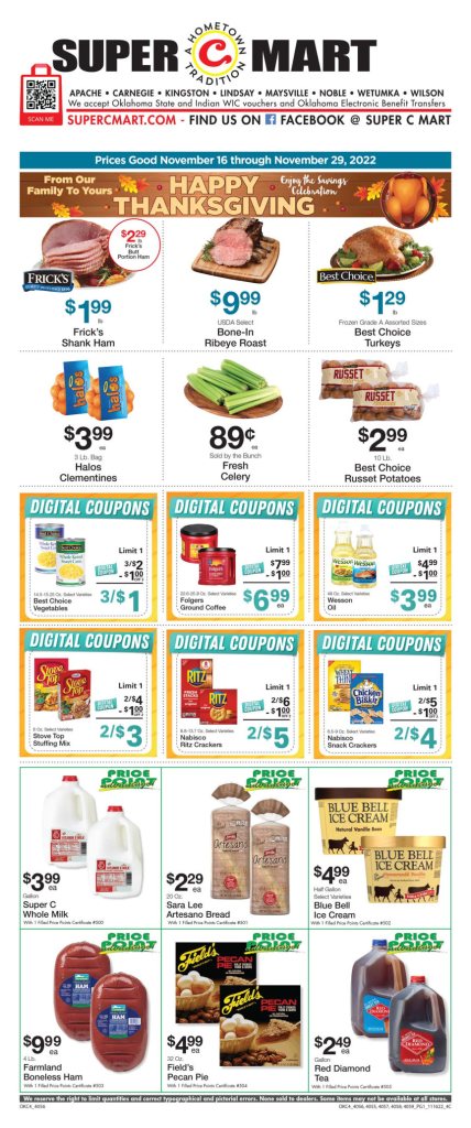 UncategorizedSave on your Thanksgiving dinner at Super C Mart November 23, 2022 Shopper News Note Share this: Click to share on X (Opens in new window) X Click to share on Facebook (Opens in new window) Facebook Like Loading... Related Published by Shopper News Note View all posts by Shopper News Note