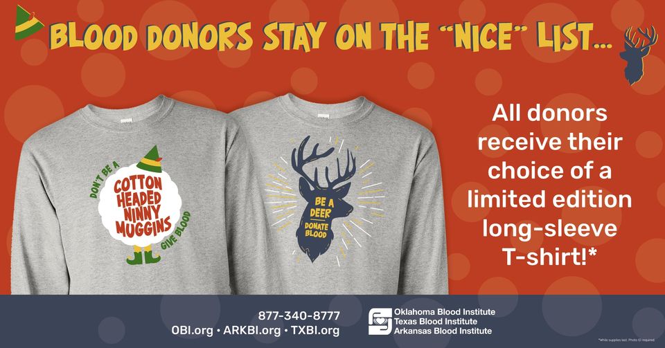 All donors receive a FREE long-sleeve T-shirt (while supplies last).
