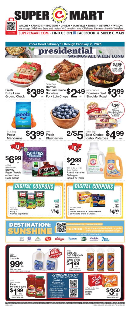 UncategorizedPresidential savings all week long at your local Super C Mart February 15, 2023 Shopper News Note Share this: Click to share on X (Opens in new window) X Click to share on Facebook (Opens in new window) Facebook Like Loading... Related Published by Shopper News Note View all posts by Shopper News Note