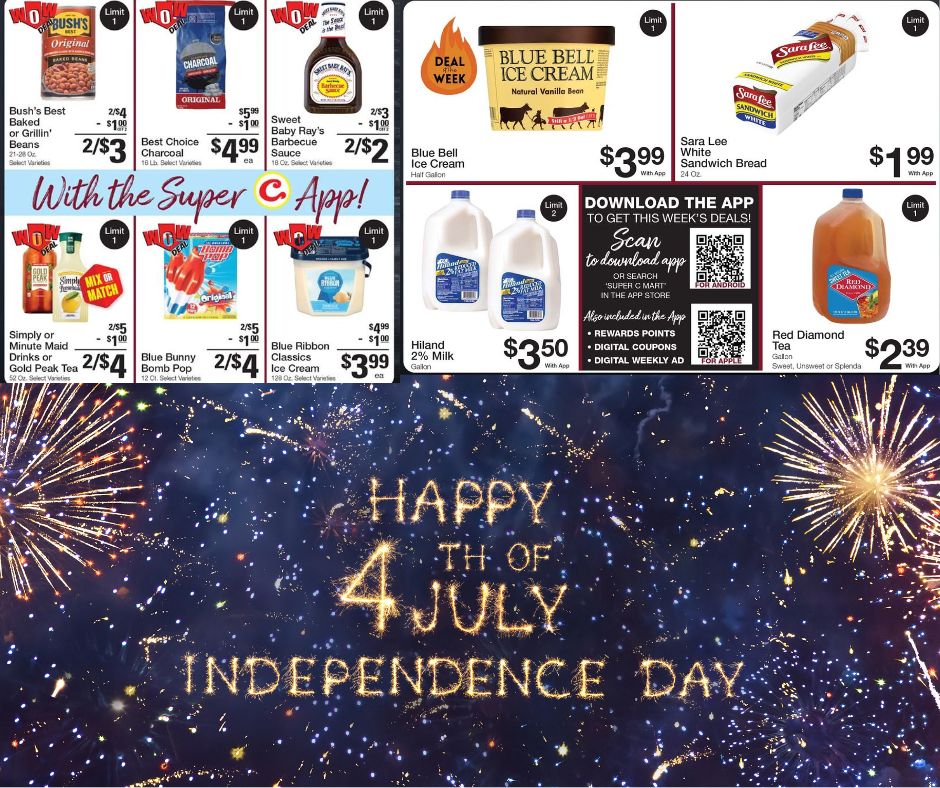 UncategorizedHappy 4th of July from Super C Mart June 28, 2023 Shopper News Note Share this: Click to share on X (Opens in new window) X Click to share on Facebook (Opens in new window) Facebook Like Loading... Related Published by Shopper News Note View all posts by Shopper News Note