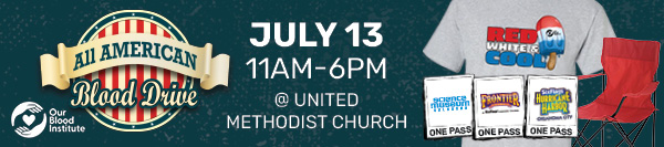 All American blood drive is set for Thurs., July 13, according to Tammy Aprill.