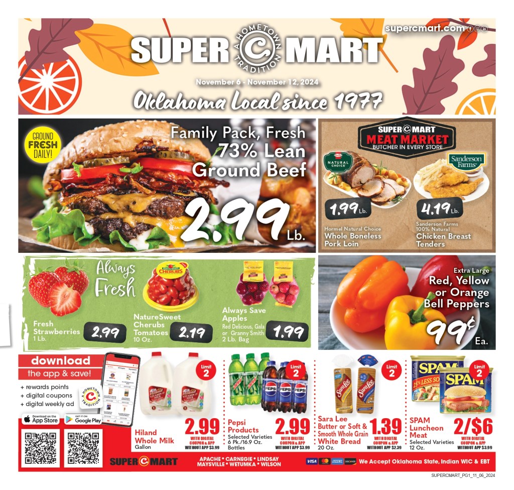 UncategorizedYour hometown Super C Mart, Oklahoma local since 1977 November 6, 2024 Shopper News Note Share this: Click to share on X (Opens in new window) X Click to share on Facebook (Opens in new window) Facebook Like Loading...