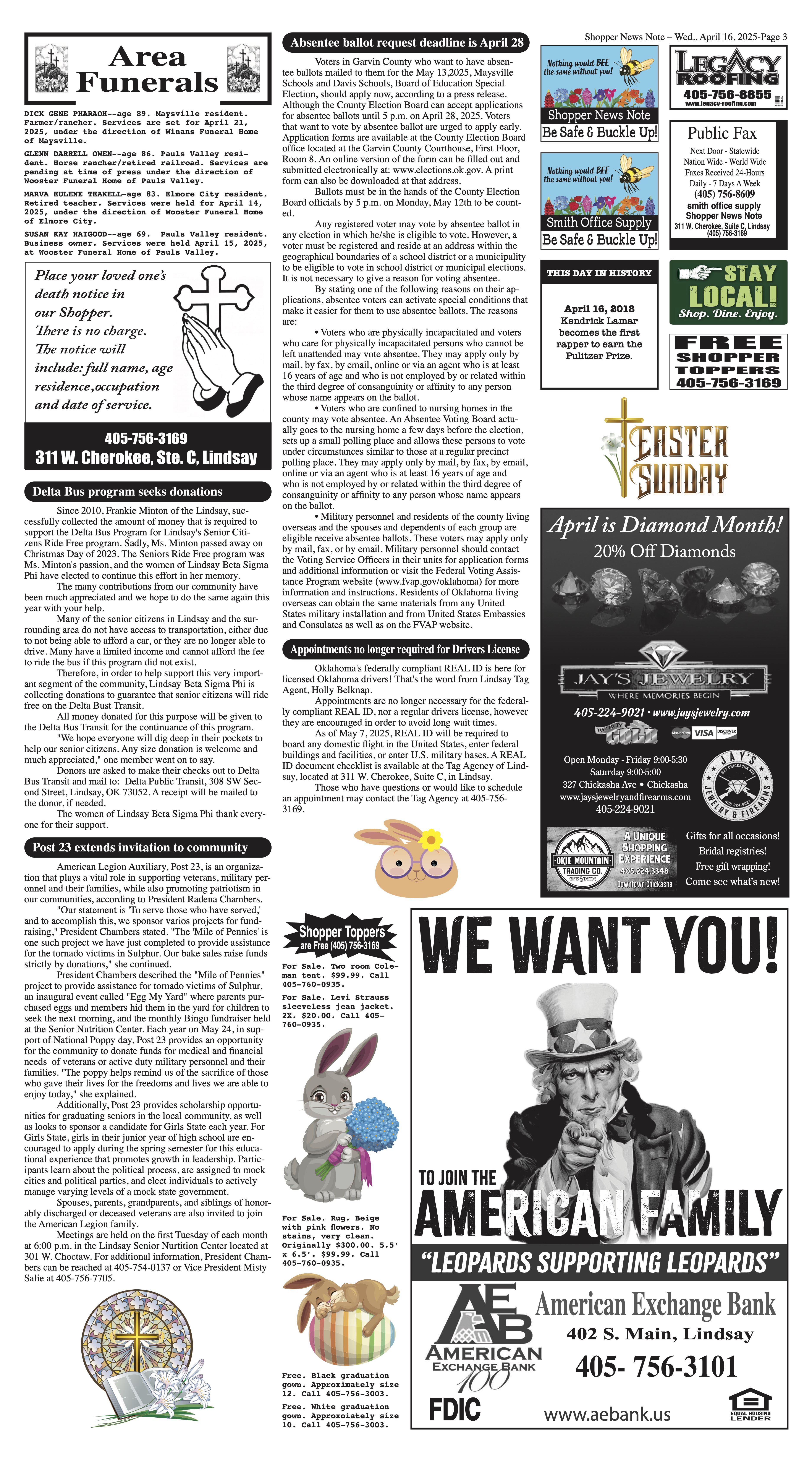 UncategorizedApril 16, 2025 edition April 16, 2025April 16, 2025 Shopper News Note Share this: Click to share on X (Opens in new window) X Click to share on Facebook (Opens in new window) Facebook Like Loading...