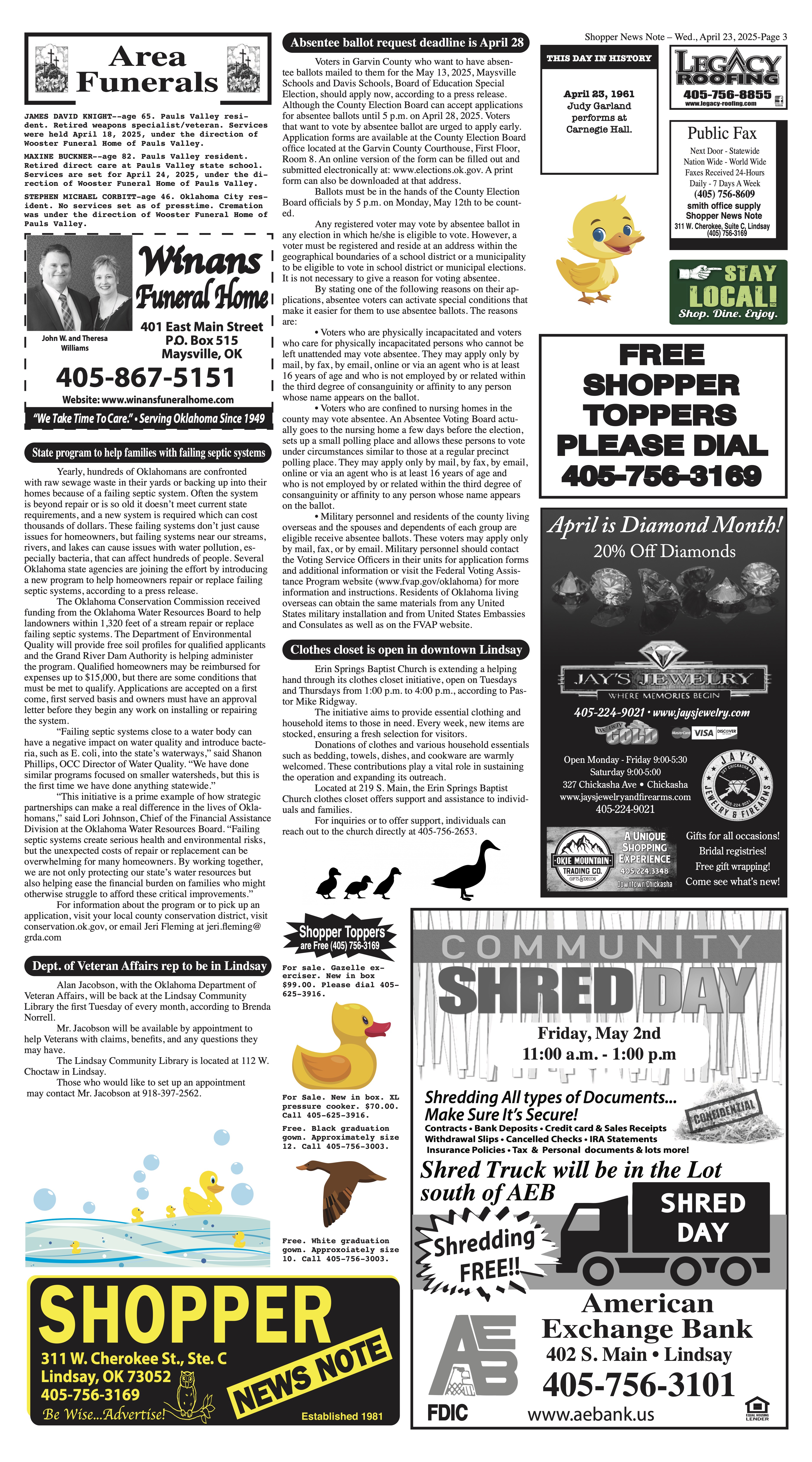 UncategorizedApril 23, 2025 edition April 23, 2025April 22, 2025 Shopper News Note Share this: Click to share on X (Opens in new window) X Click to share on Facebook (Opens in new window) Facebook Like Loading...