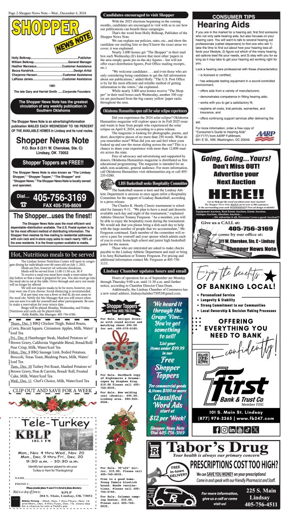 UncategorizedDecember 4, 2024 Edition December 4, 2024 Shopper News Note Share this: Click to share on X (Opens in new window) X Click to share on Facebook (Opens in new window) Facebook Like Loading...